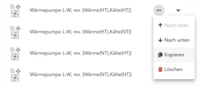 Dafür in „Schritt 3 – Varianten“ den existierenden Energieerzeuger kopieren, anschießend entsprechend umbenennen, die Dimensionierung des Bestandserzeugers eintragen.