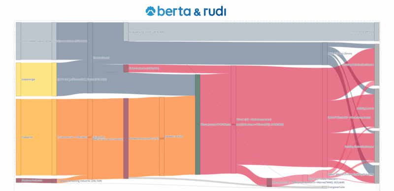 So sieht kalte Nahwärme in berta & rudi aus – das Sankey-Diagramm stammt aus einem realen Projekt. Möchtest du mehr sehen oder die Software in einem kostenlosen Demo-Termin kennenlernen? Dann vereinbare noch heute einen Termin!