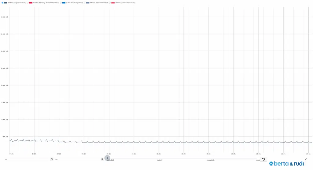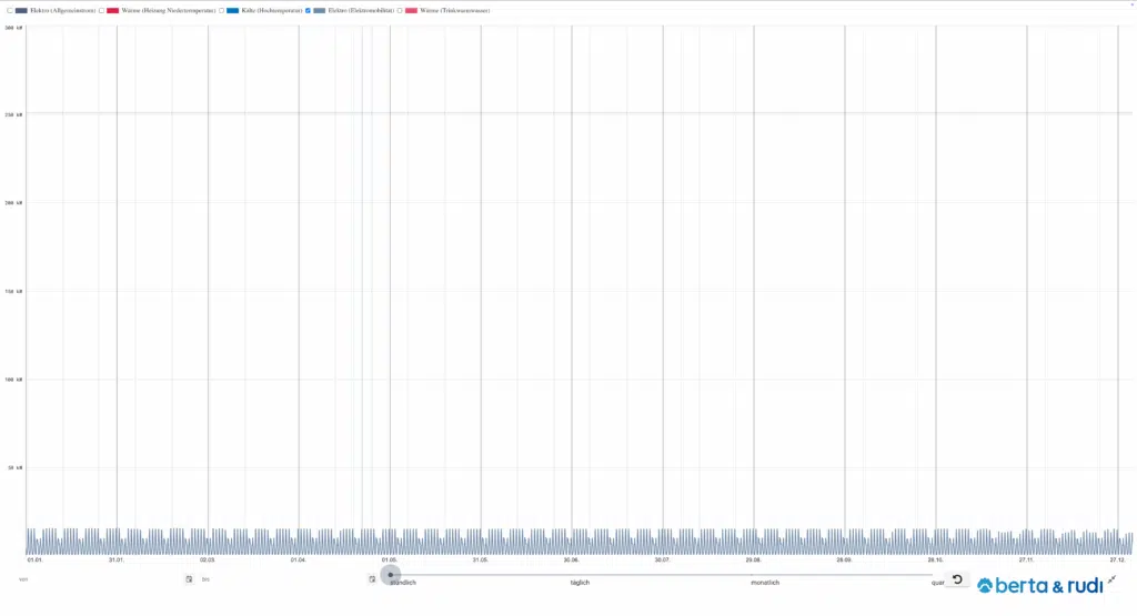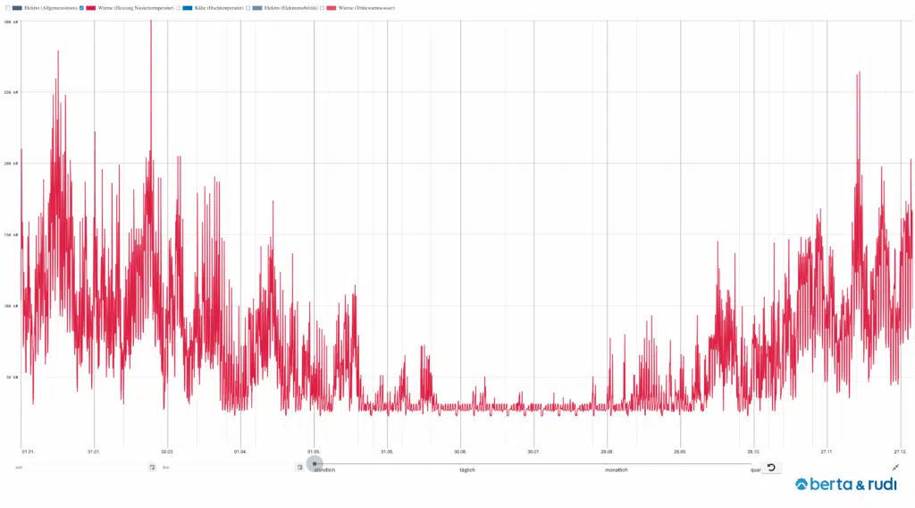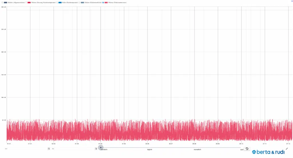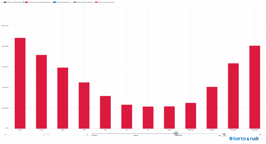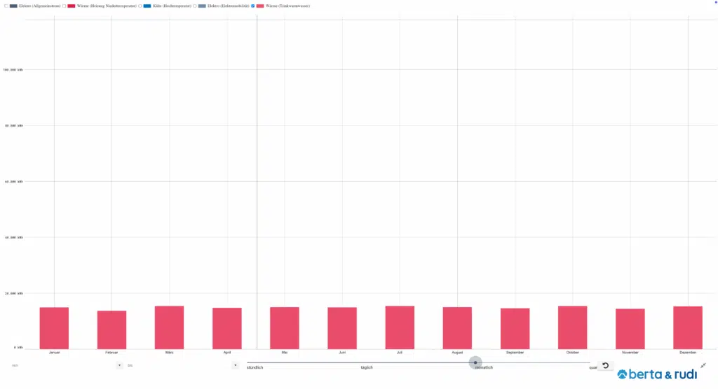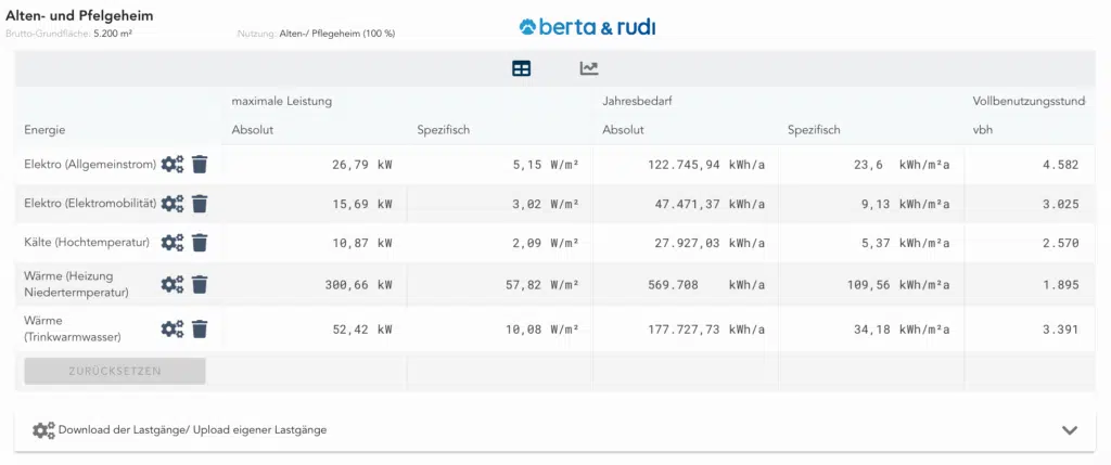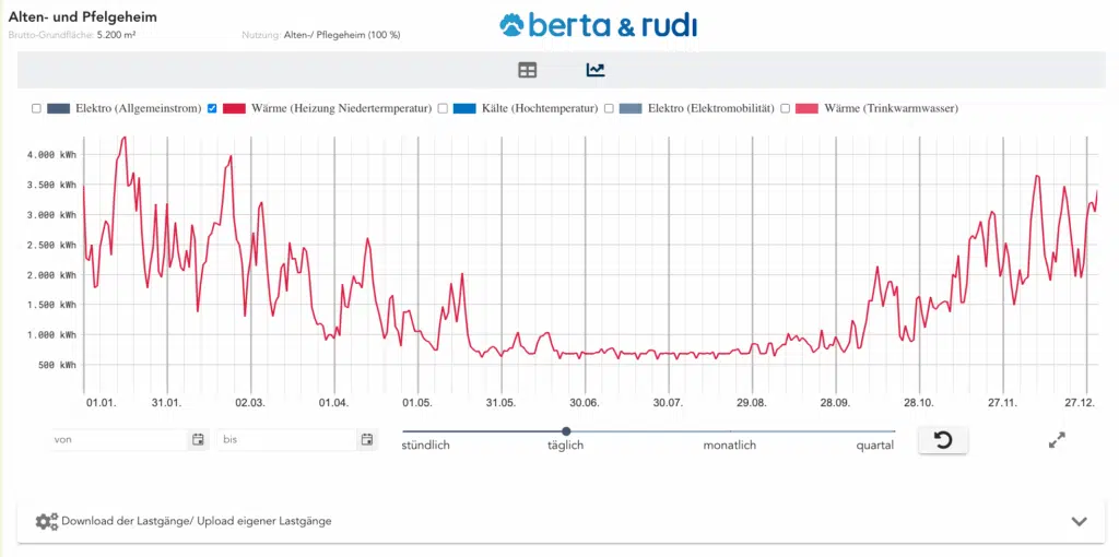 Alten- und Pflegeheime gehören zu den kontinuierlich genutzten Nichtwohngebäuden und weisen einen gleichmäßigen, ganzjährigen Energiebedarf auf – mit nur geringen Schwankungen im Tages- oder Jahresverlauf. In diesem Beitrag findest du das typische Lastprofil eines Pflegeheims, aufgeschlüsselt nach den Gewerken Raumwärme, Raumklimatisierung, Trinkwarmwasser, Allgemein- und Nutzerstrom sowie Elektromobilität. Für Alten- und Pflegeheime stehen spezifische Lastprofile zur Verfügung, die sowohl stündlich als auch in täglicher, monatlicher und quartalsweiser Auflösung visualisiert sind. So erhalten Energieexpert:innen eine verlässliche Grundlage für eigene Berechnungen oder Simulationen – mit berta & rudi.