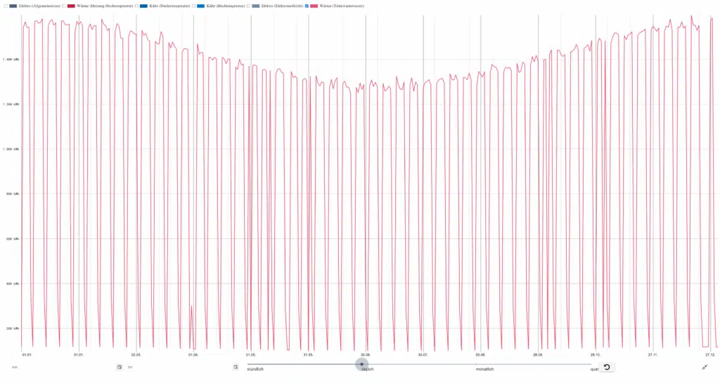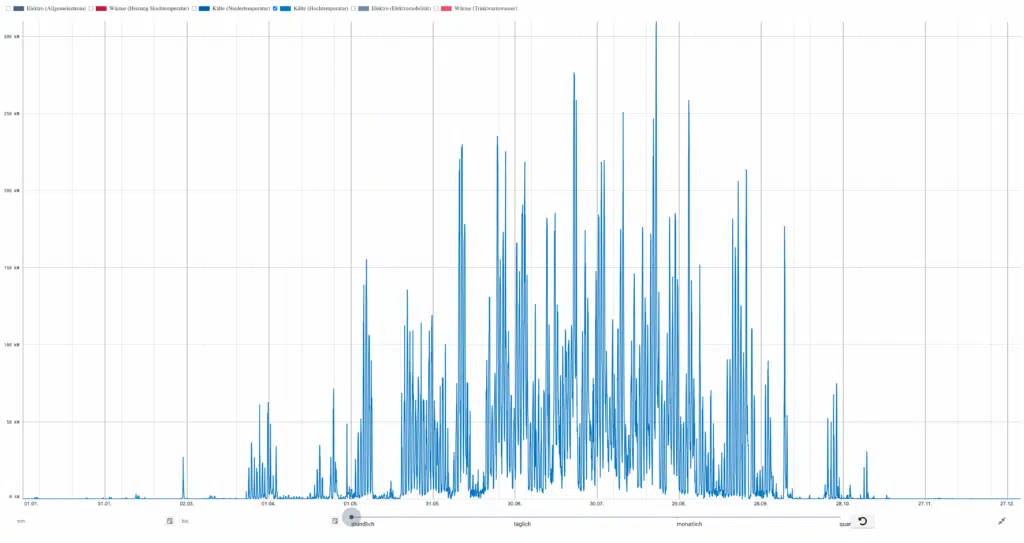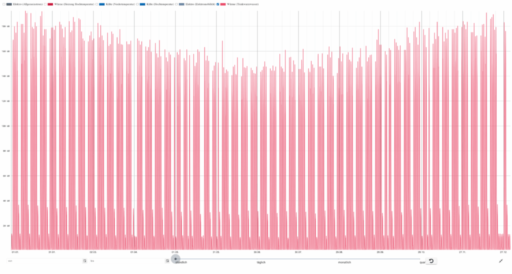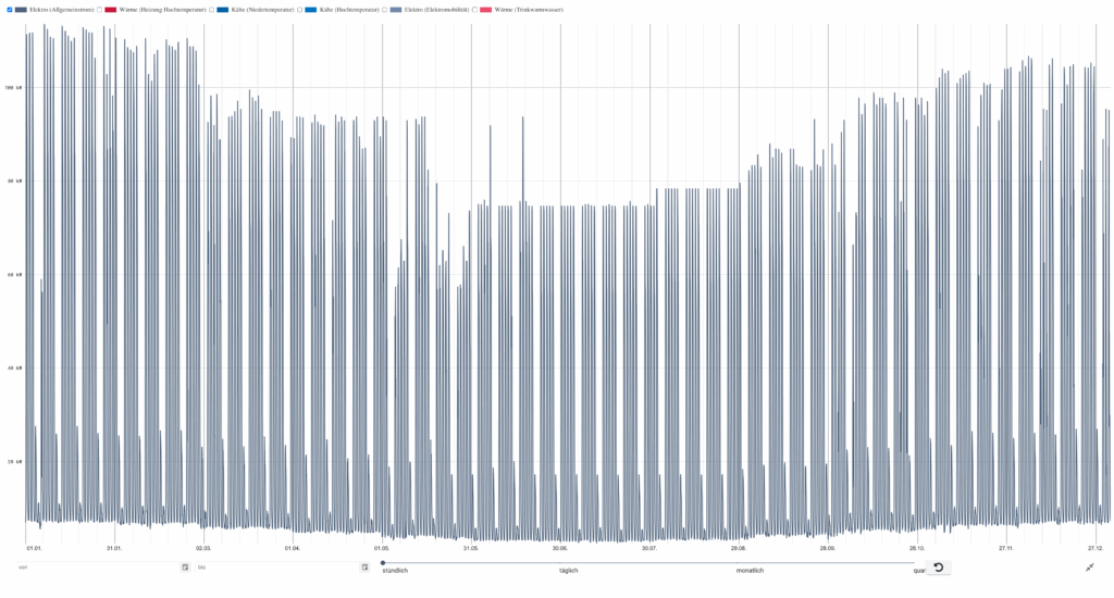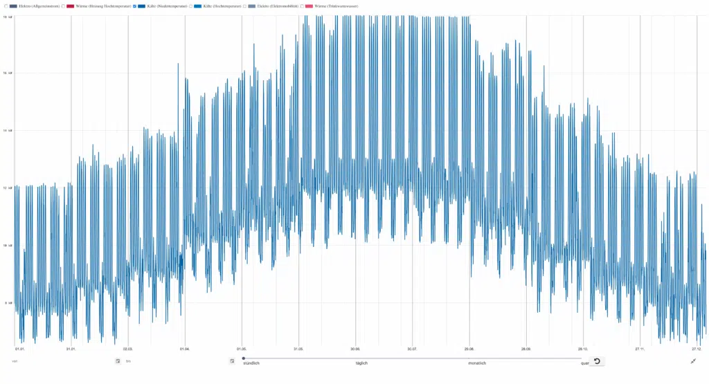 - Sommerbetrieb mit klarer Lastspitze zwischen 13–16 Uhr