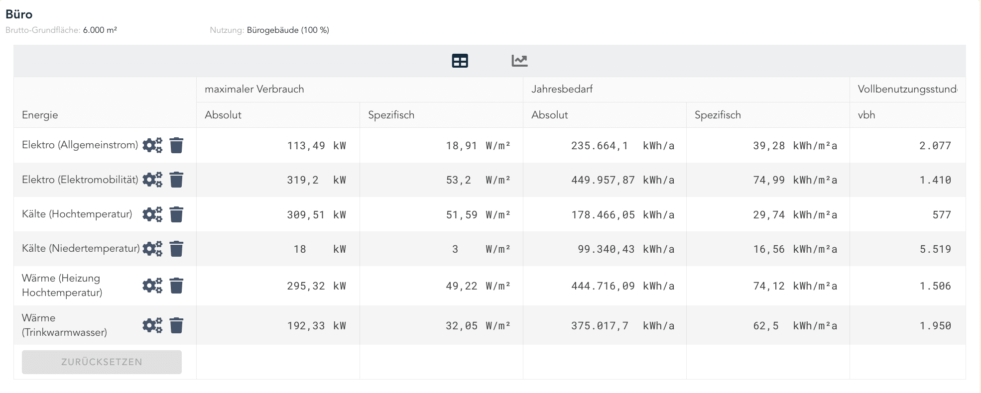 Eigenschaften: Lastprofilen von Büros