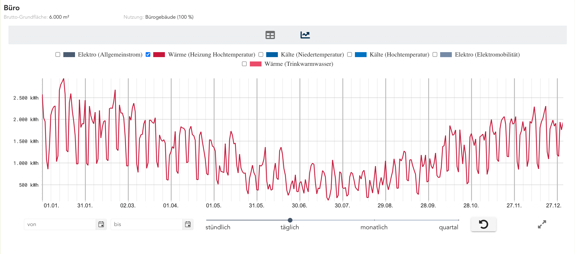 Lastprofil für Raumwärme in Büros