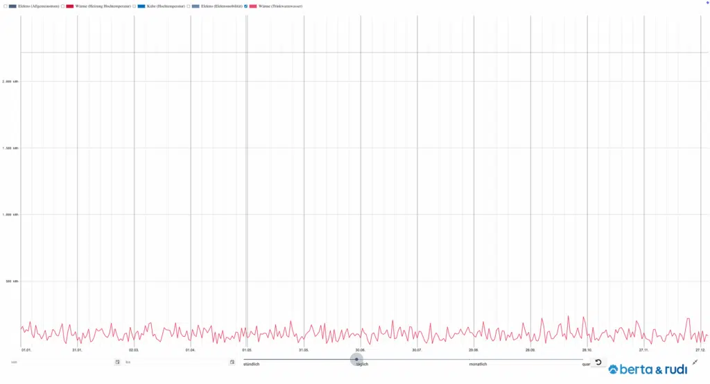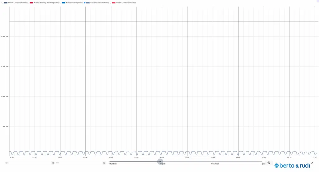 Weil sich der gesamte Energiebedarf auf wenige Stunden konzentriert – vor allem rund um die Mittagszeit. Vor und nach dem Betrieb ist der Verbrauch minimal.