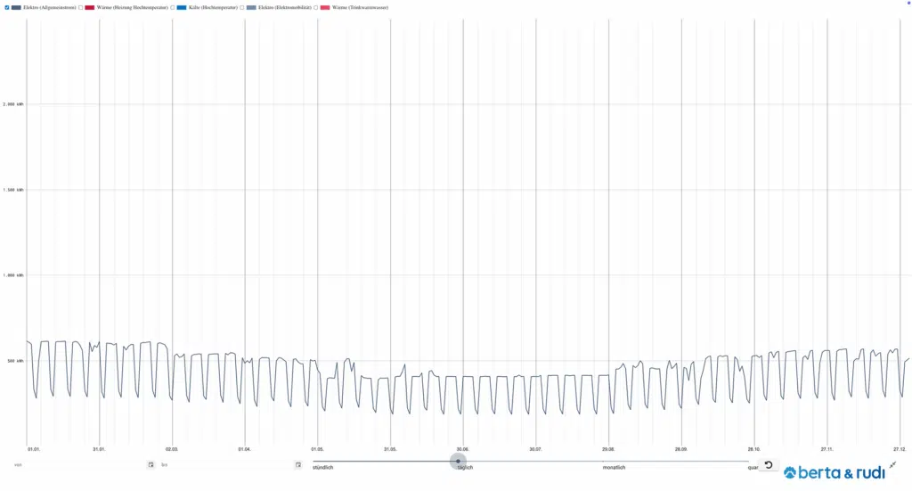 - Kaum Verbrauch außerhalb der Betriebszeiten, insbesondere nachts und am Wochenende