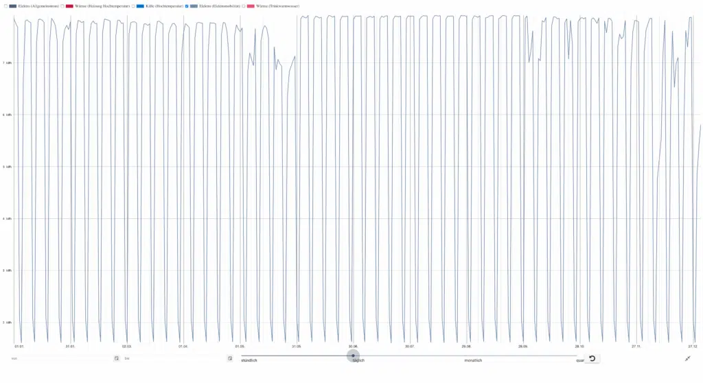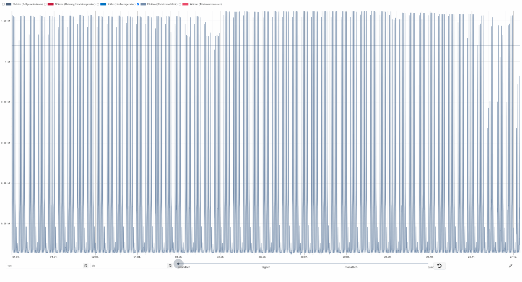 • Nach 15:30 Uhr abnehmender Verbrauch, kaum Last nach 17:00 Uhr