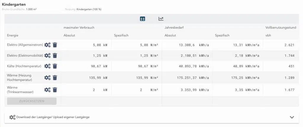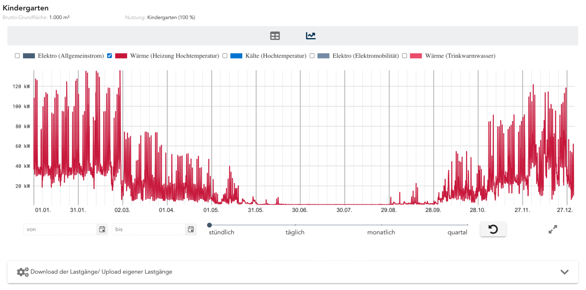 Lastprofil Raumwärme für Kindergärten I Screenshot aus berta & rudi