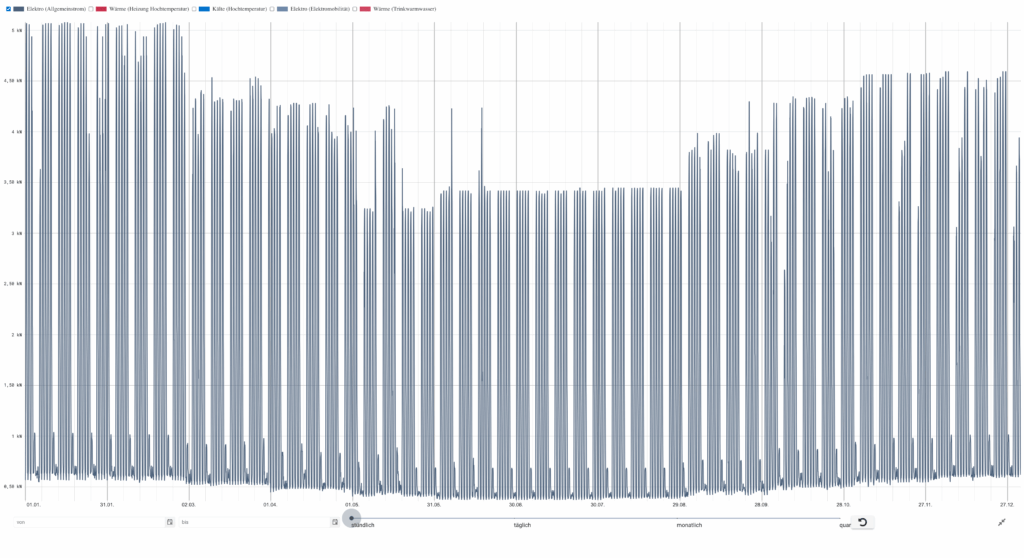 • Mittags: Peak durch Warmwasser (Essensversorgung), Licht, Geräte