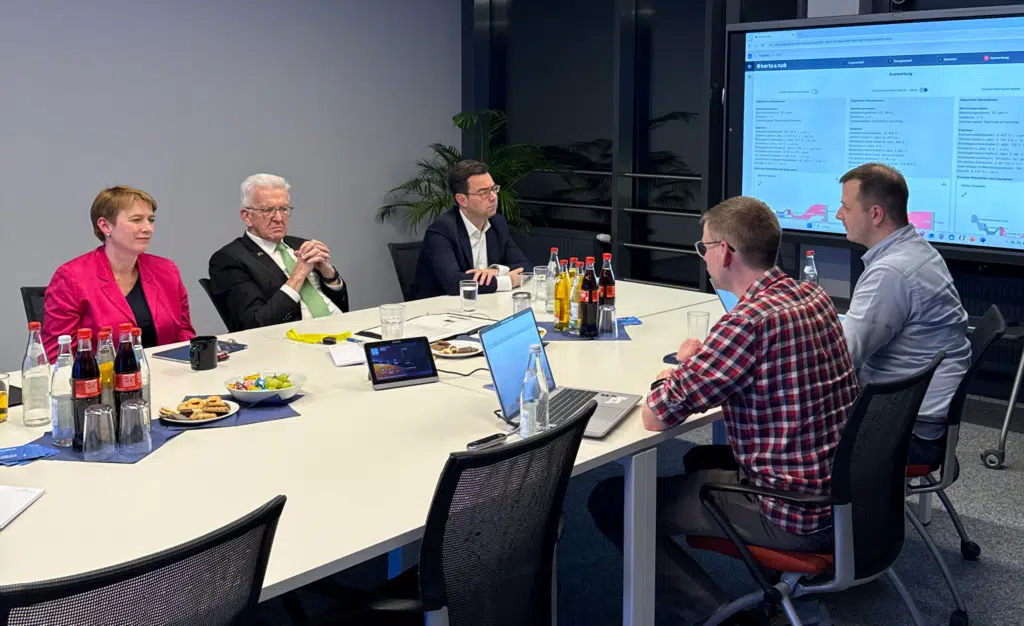 Ministerpräsident Winfried Kretschmann besuchte uns, begleitet von Staatssekretärin Andrea Lindlohr und Dr. Sebastian Schaefer (beide Bündnis 90/Die Grünen), um über die Zukunft der Energieversorgung und die Rolle von Startups in diesem Bereich zu diskutieren.
