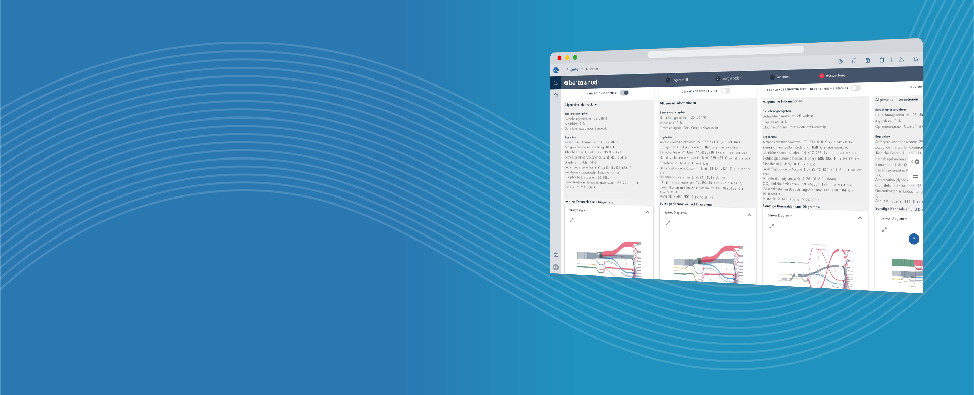 - Flexible Szenarienplanung: CO₂-,investitions- oder gesamtkostenoptimierte Konzepte können direkt in einem Projekt analysiert und verglichen werden.