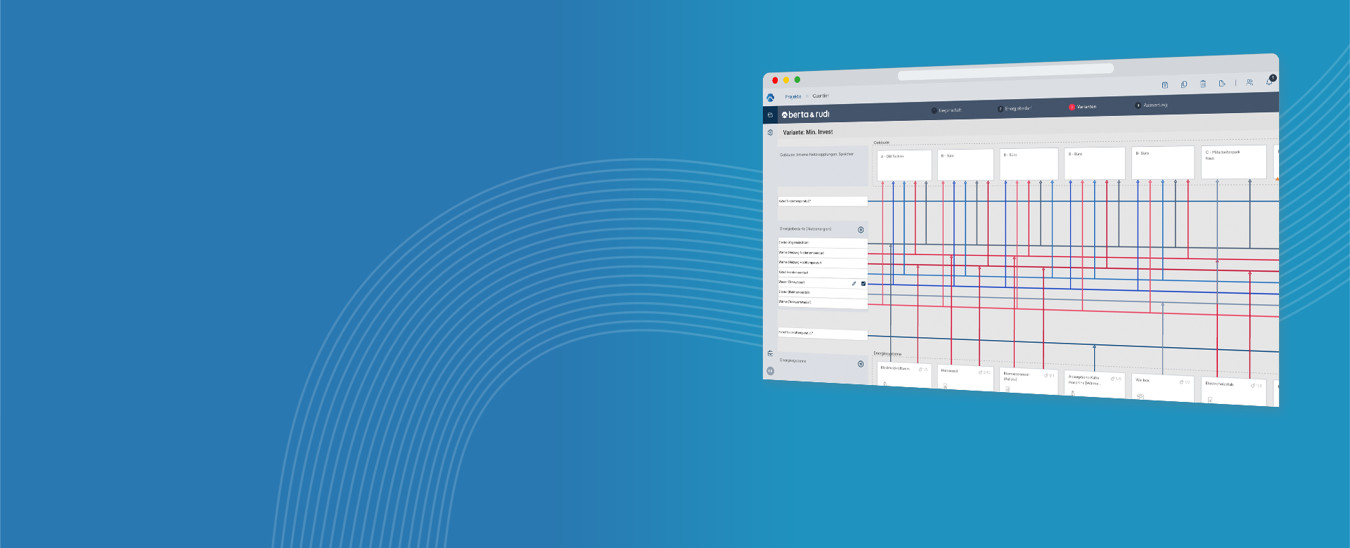 - Variantenvergleich von Anfang an: Diverse Systemvarianten werden parallel erstellt, betrachtet und optimiert – kein späterer Schritt.